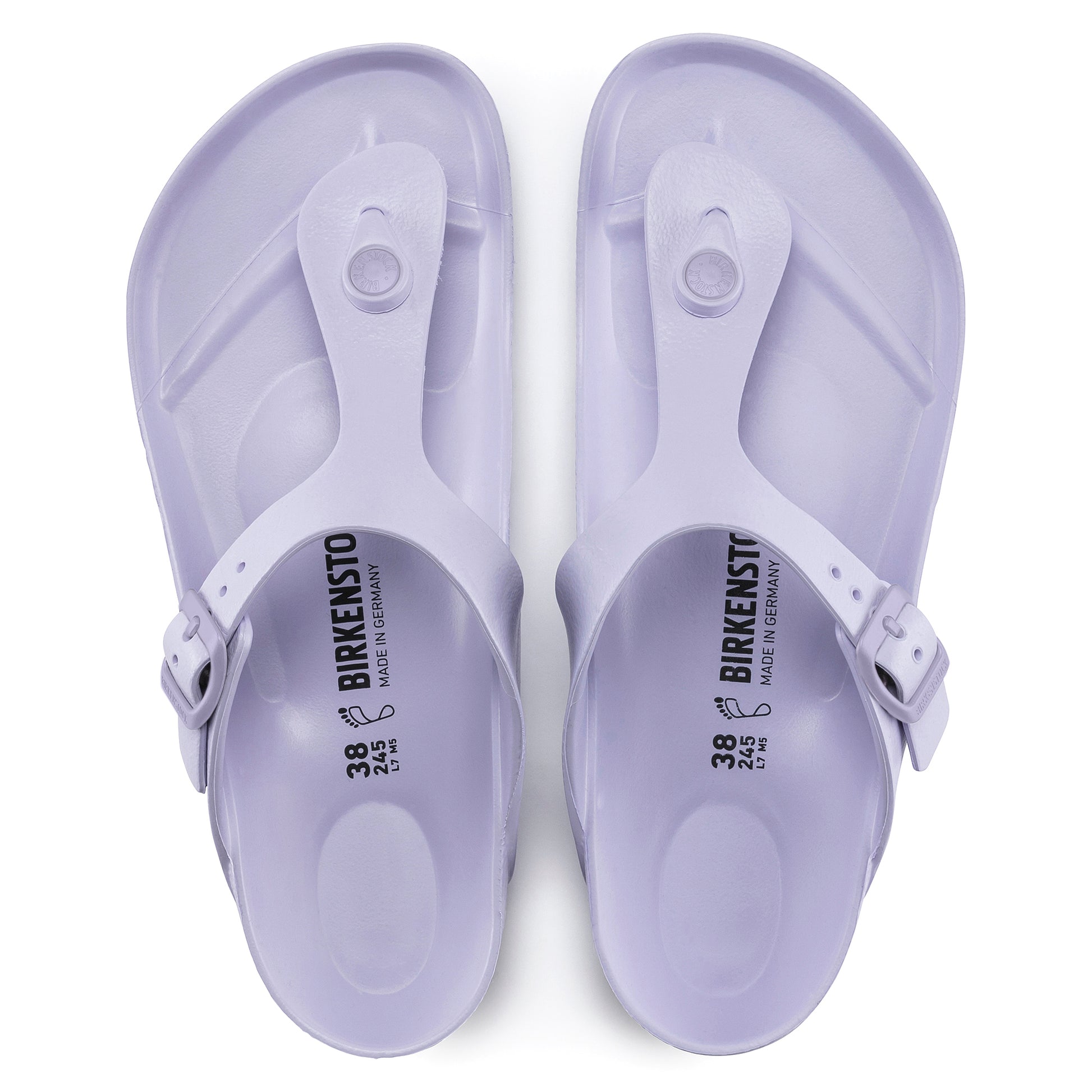 The Gizeh - a modern thong sandal from BIRKENSTOCK. This version made from ultra light and highly flexible EVA. These sandals are shock absorbing, waterproof, and skin-friendly. Wear them at the beach, in the garden, or around the gym and after workouts. It's the perfect addition to your classic BIRKENSTOCK sandals.