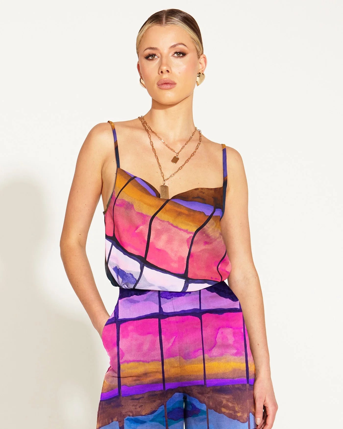 Immerse yourself in the graceful allure of our Somewhere Near Home Cami. This relaxed-fit marvel features a delicate cowl neckline and thin straps, creating an artistic silhouette that exudes ease and sophistication. Elevate your everyday style with this wearable masterpiece, where comfort meets refined elegance. Explore the essence of chic sophistication in every graceful detail.