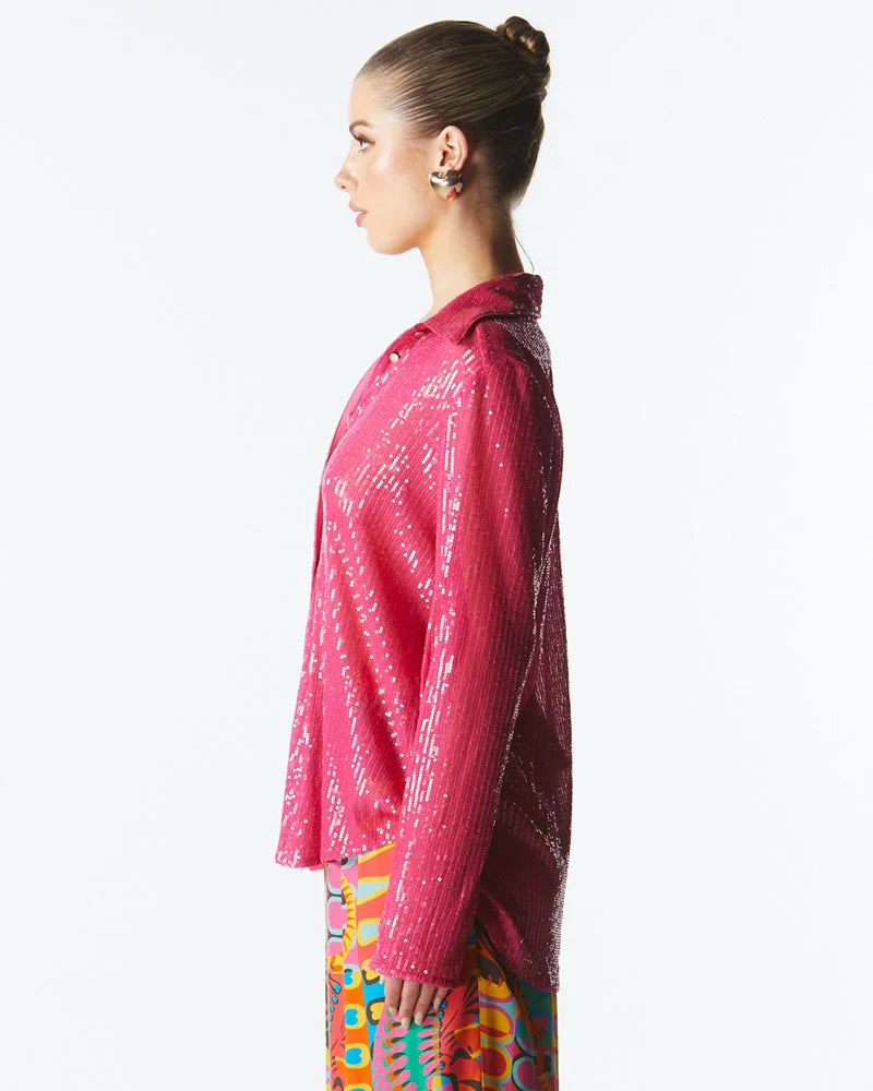 Add a hint of glamour to your wardrobe with the Impression Sequin Shirt. With a collared button opening and long sleeves, this unlined shirt pairs elegance with ease, ideal for those seeking an understated yet elevated look.