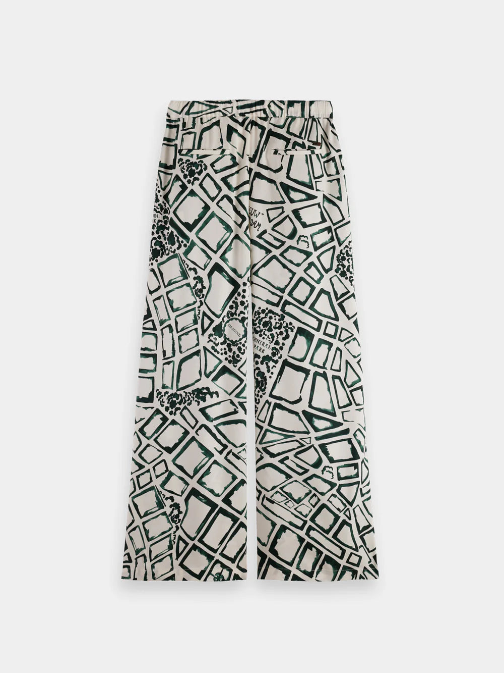 Effortlessly chic, these wide leg drawstring pants feature a minimalist Amsterdam print ideal for lounging or a casual outing. They are full length and are finished with a high-rise waist.