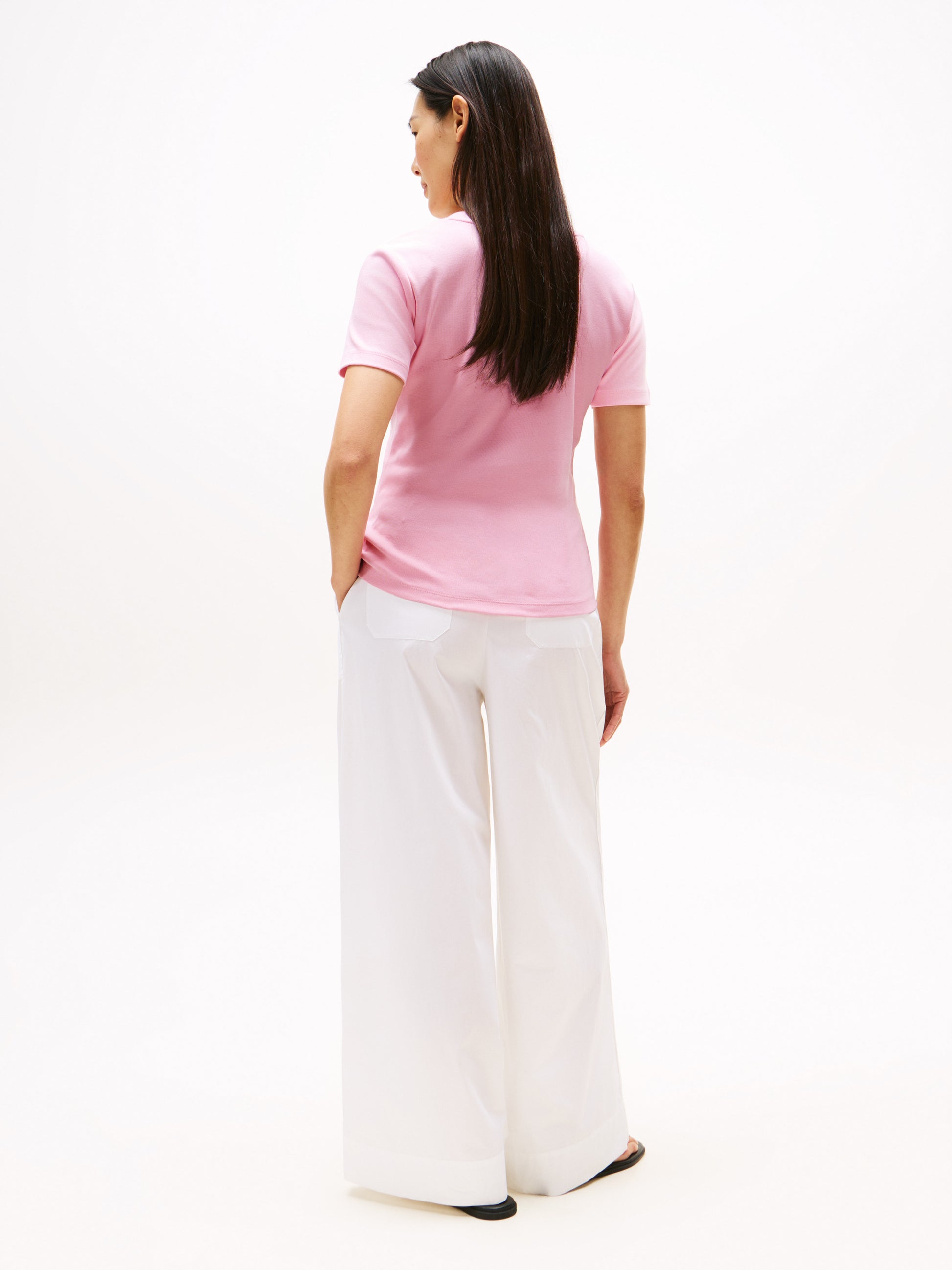 Refresh your everyday wardrobe with this fitted pure cotton T-shirt and its flattering V-neck, plus flag embroidery to draw the eye.